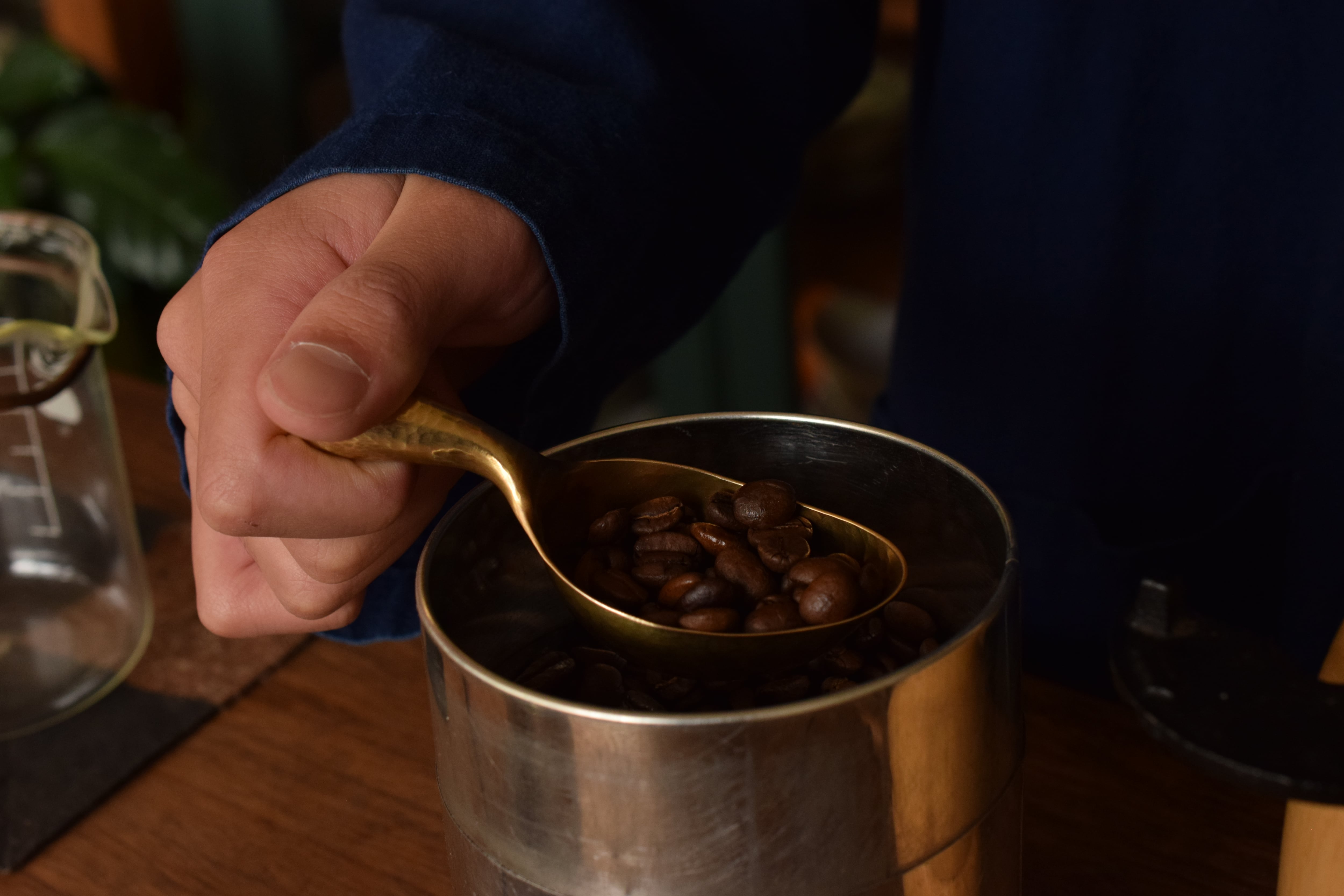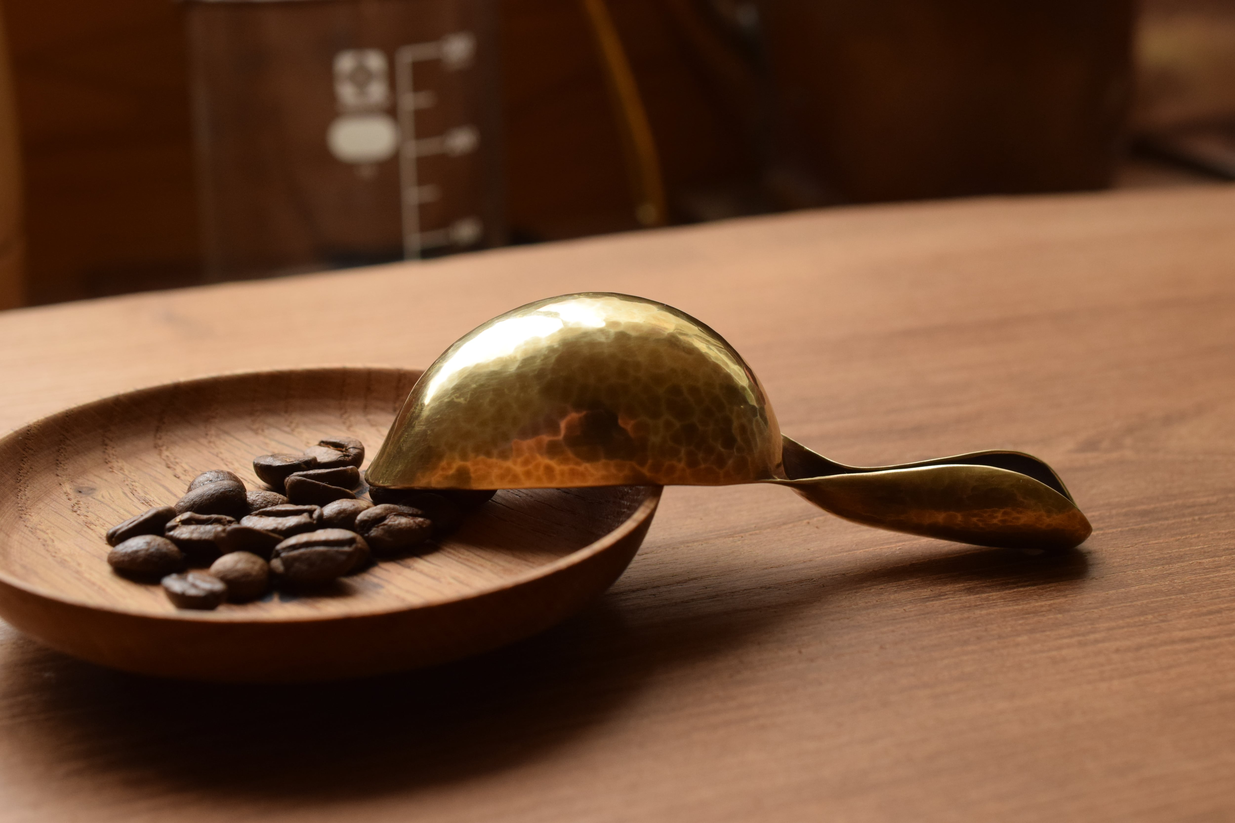 ヴィンテージ感漂う真鍮メジャーがコーヒーの時間をカッコよく演出してくれます。